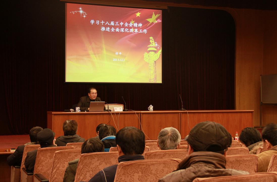 辞旧迎新之际,离退休党委、工作处于12月25日下午1点15分组织了一场迎新报告会,同时亦是我校老龄工作品牌项目之一的校级领导系列报告会,邀请到校党委副书记、纪委书记忻平教授做了一场题为《学习十八届三中全会精神,推进全面深化改革工作》的精彩报告,离退休党委各支部书记、支委、块组长及离退休工作人员近二百人聆听了报告会。