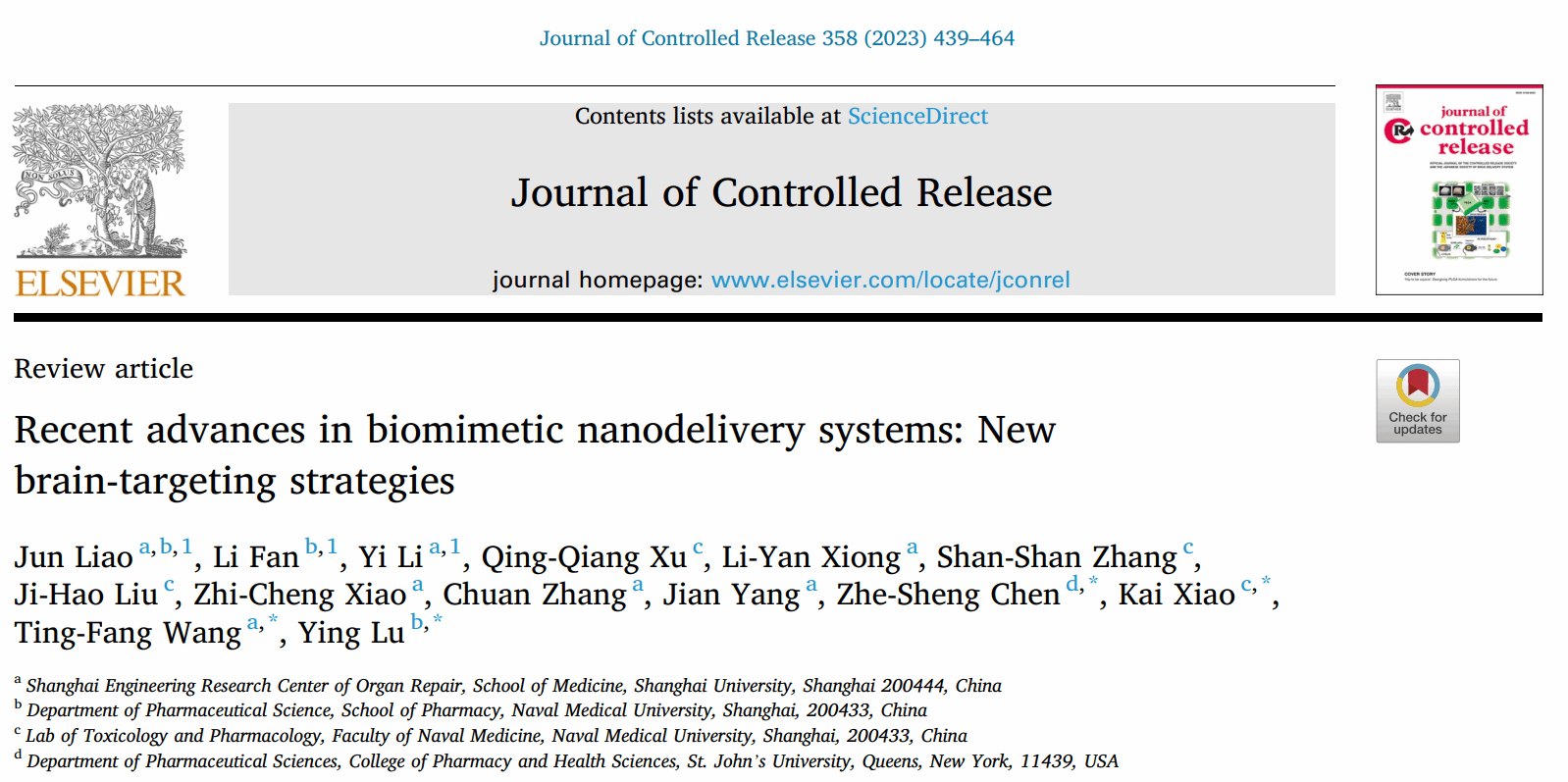 张川教授团队在药剂学领域国际知名期刊《Journal of Controlled release》上发表综述