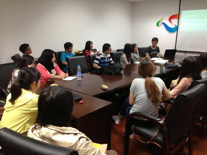 我院2013年暑期社会实践参与人员以11级学生为主,共有十支队伍参与社会实践,选题覆盖面广,包括结合专业知识的生态文明和环境状况调研、环保知识宣讲、关注社会弱势群体的志愿服务活动、关注社会热点焦点问题的公益调研等,参与人数众多,形式内容丰富。推介会上,各项目团队负责人就项目构思、策划方案、进度情况、人员配备、暑期工作进展计划等做了详细展示与介绍,各位老师和其他团队成员也从客观角度不遗余力地为其提出可行性意见和建议,台上台下观点碰撞、智慧交融,现场上演着一幕幕精彩而创意十足的“头脑风暴”。