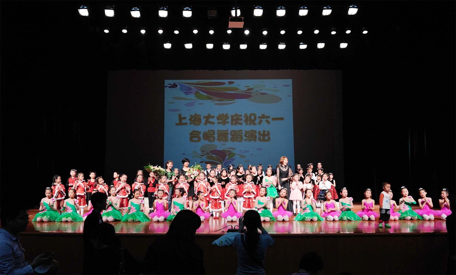 上海音乐之声艺术团里最小的小演员才3岁,大的已经上小学四、五年级,5月31日晚上,他们不仅为我们带来了耳熟能详的沪语童谣《猜咚猜》、《摇啊摇,摇到外婆桥》、《笃笃笃买糖粥》,还表演了舞蹈《大书包》、《姥姥门前看大戏》和爵士舞《王者归来》。台上的精彩表演带动了台下小朋友的互动,他们有的随着音乐小声地哼唱,有的兴高采烈地跟着节奏舞动小手。这场演出给我校教职工子女带来了欢乐,让小朋友们提前过了一个愉快的六一。(凌馨)